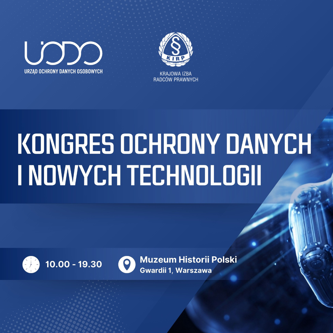 Krajowa Izba Radców Prawnych wspólnie z Urząd Ochrony Danych Osobowych zapraszają do udziału w Kongresie Ochrony Danych i Nowych Technologii, który odbędzie się 28 stycznia 2026 r., w Jubileuszowym, 20. Europejskim Dniu Ochrony Danych Osobowych. Wydarzenie odbędzie się w siedzibie Muzeum Historii Polski w Warszawie i stanowi jedno z najważniejszych ogólnopolskich forów wymiany wiedzy i doświadczeń w obszarze ochrony danych osobowych, nowych technologii oraz regulacji cyfrowych.